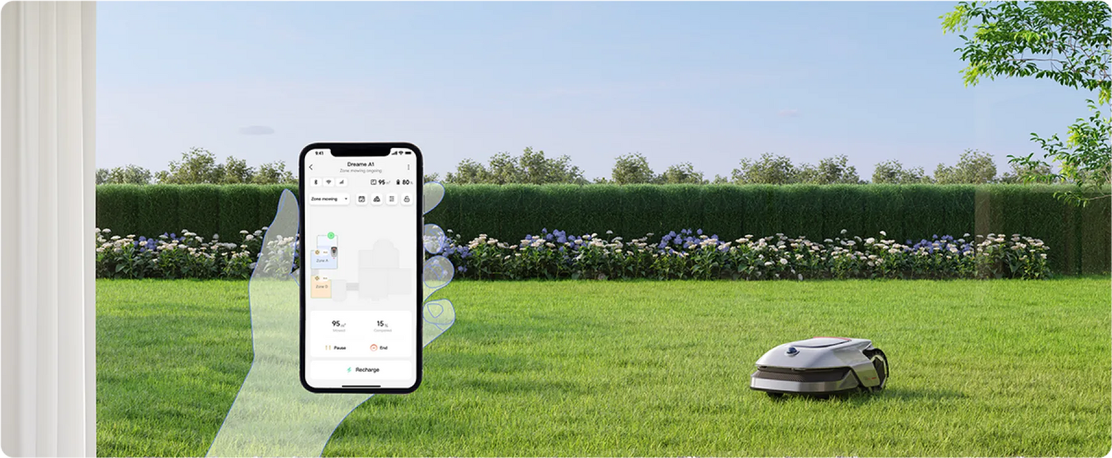 A1 intelligently returns to recharge when low on power, and resumes mowing once fully charged, ensuring uninterrupted mowing with meticulous and thorough coverage.