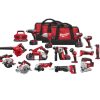 The 2695-15 M18™ cordless 15-tool combo kit includes the 1/2″ M18™ Compact Hammer Drill/Driver (2607-20), M18™ 1/4″ Hex Impact Driver (2656-20), M18™ 1/2″ Compact Impact Wrench with Pin Detent (2659-20), M18™ 1/2″ High-Torque Impact Wrench with Friction Ring (2663-20), M18™ Right Angle Drill (2615-20) , M18™ 5/8 SDS Plus Rotary Hammer (2612-20), M18™ Sawzall Recip Saw (2620-20), M18™ Bandsaw (2629-20), M18™ 6 1/2″ Circular Saw (2630-20), M18™ 5 3/8″ Metal Saw (2682-20), M18™ Cut-off/Grinder (2680-20), M18™ Jig Saw (2645-20), M18™ Multi-Tool (2626-20), M18™ Compact Blower (0884-20), M18™ LED Work Light (2735-20), M18™ Six Pack Sequensital Charger (48-59-1806), and (4) M18™ REDLITHIUM™ XC 4.0 Extended Capacity Battery Packs. The M18™ Cordless lithium-ion system’s patented technologies and electronics, innovative motor design, and superior ergonomics provide the most efficient blend of power, weight and performance in the industry. Powered by REDLITHIUM™ the M18™ cordless system delivers more torque, more power, and longer run-time than the competition.